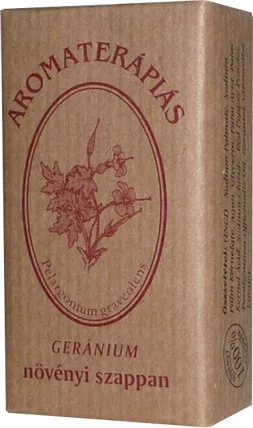 Geránium szappan: C vitamin tartalmú paprikával festett. Geránium illóolaj tartalmánál fogva vitalizálja a száraz bőrt, normalizálja a faggyúmirigyek működését.